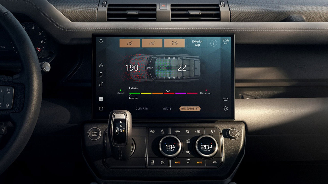 座舱延续卫士标志性工业美学风格,镁合金贯通式饰板等设计呼应其硬派越野本质;可直接冲洗的橡胶地板与耐磨材质体现实用考量。豪华舒适体验方面,最高支持18向电动调节的空调座椅、三/四区自动空调搭配PM2.5离子空气净化器,打造洁净座舱微气候。