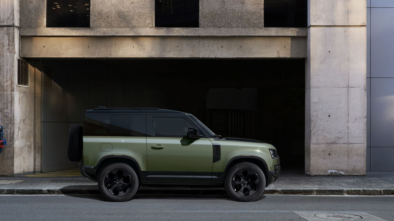 细节标识亦同步更新:原有绿色LAND ROVER徽标被黑色取代,轮毂中心盖也升级为高光黑色,搭配水平拉丝铝饰条与DEFENDER字样,凸显独立而现代的品牌形象。车身硬件与配色同步焕新,暗黑特别版新车升级标配亮黑色轮拱保护罩,22英寸全新7幅哑光灰钻石切割轮毂全新上线,同时轮毂选择也更为丰富;配色体系方面,全系新增牧野绿和矿韵灰,90全系10种颜色可选,110全系9种颜色可选,并提供专属塞多纳红车漆与车身同色备胎罩,演绎多重越野格调。针对中国市场,90车型推出传奇黄、雨林绿两款全球独家限定配色,搭配黑色外观套件等,独特稀缺,宜用宜藏。